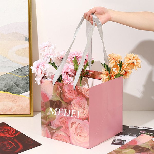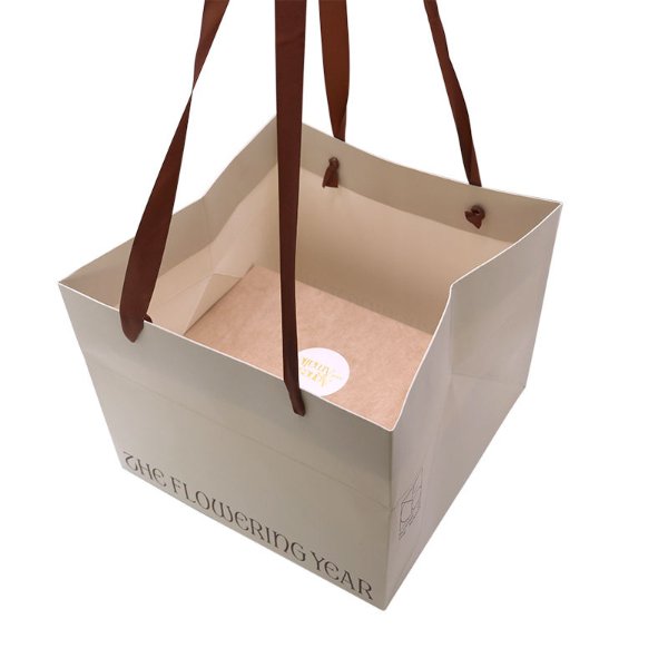 Paper TypeCustom LOGO 200PCS Square 25x25x25cm Large Base Paper Shopping Bag Cake Flowers Packaging Paper BagsPaper Type