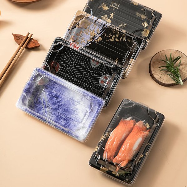 Wholesale Disposable Tableware Gold Meat Dessert Fruit Seafood Salmon Sashimi Sushi Trays Sushi Box